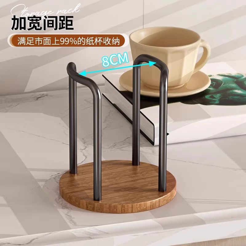 胡桃木一次性杯子纸杯架高级感取杯器放水杯桌面收纳置物茶杯咖啡