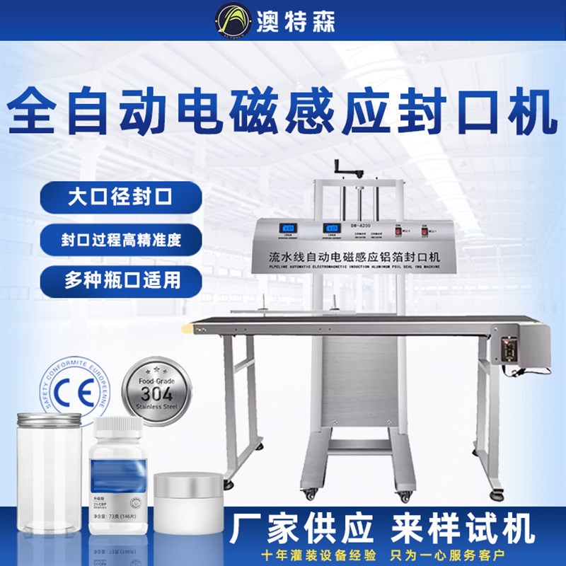 全自动流水线电磁感应铝箔封口机铝膜玻璃瓶药瓶塑料罐传输带立式