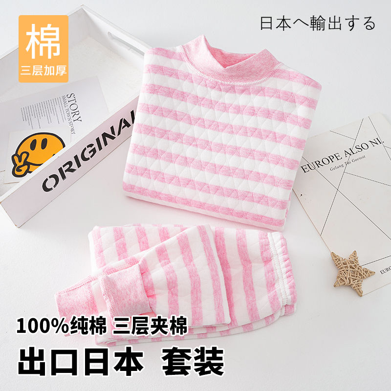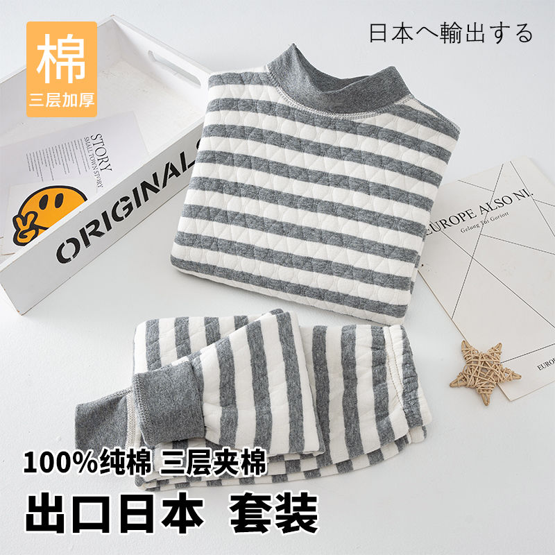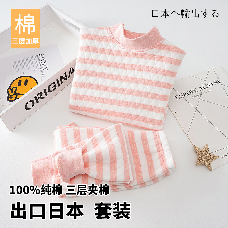 日系出口男童女童保暖内衣套装三层加厚发热儿童秋衣秋裤中大童