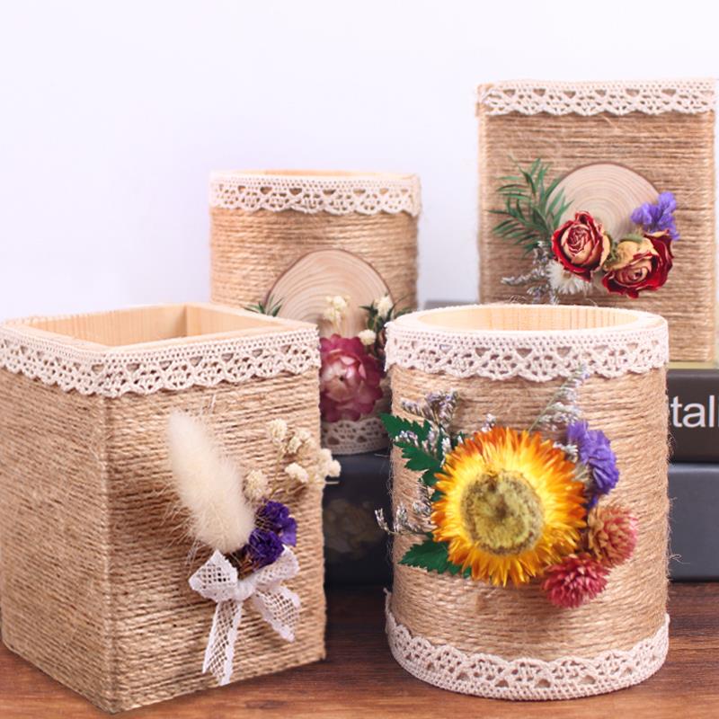 笔筒手工diy材料包制作麻绳编织办公室桌面收纳摆件自制创意礼物