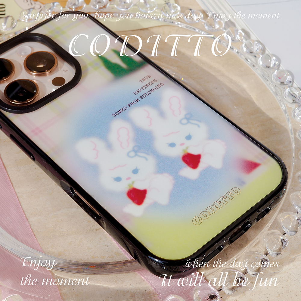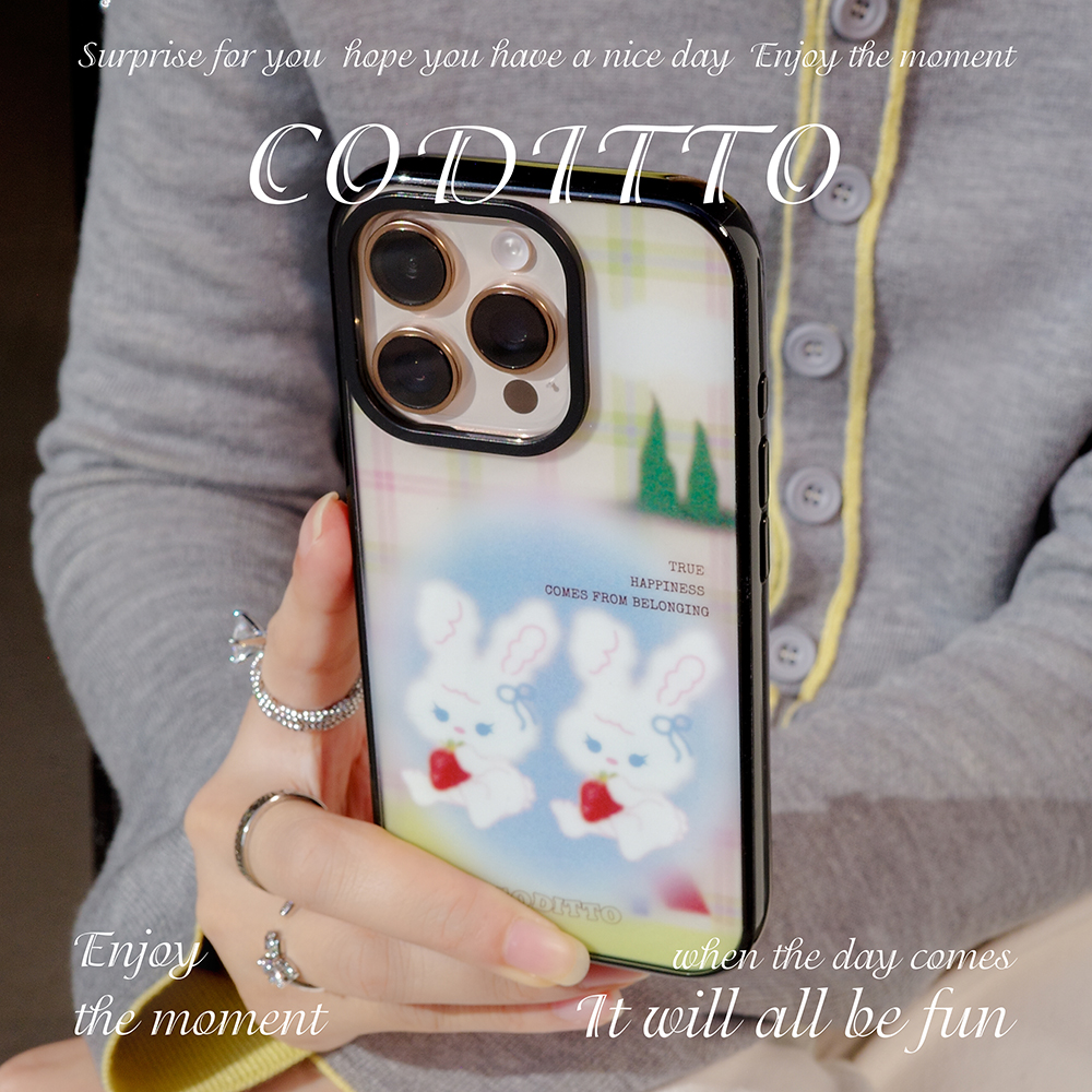 coditto春天的兔子黑边磨砂适用iPhone16promax手机壳可爱少女心苹果16pro15promax14pro保护套新款15pro防摔