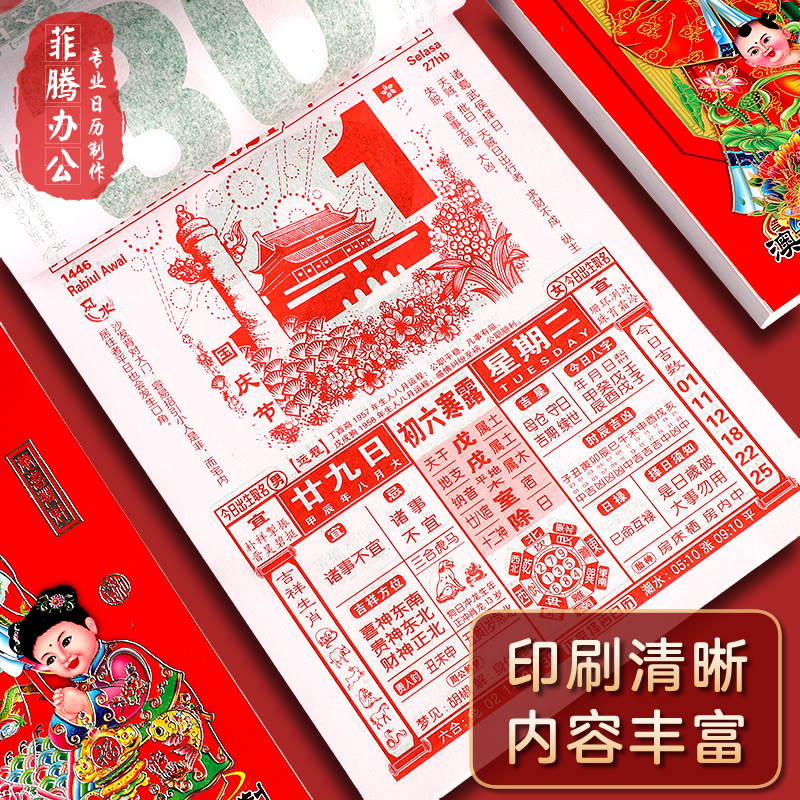 日历2026年马年新款老黄历挂历家用挂墙大号传统黄历老式手撕万年历挂式2025农历年历每天一页老皇历一日香港