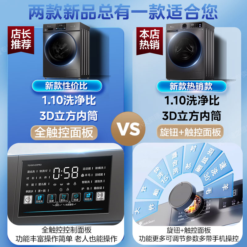 【政府补贴20%】小天鹅滚筒全自动家用洗衣机10kg洗脱烘098/V23P