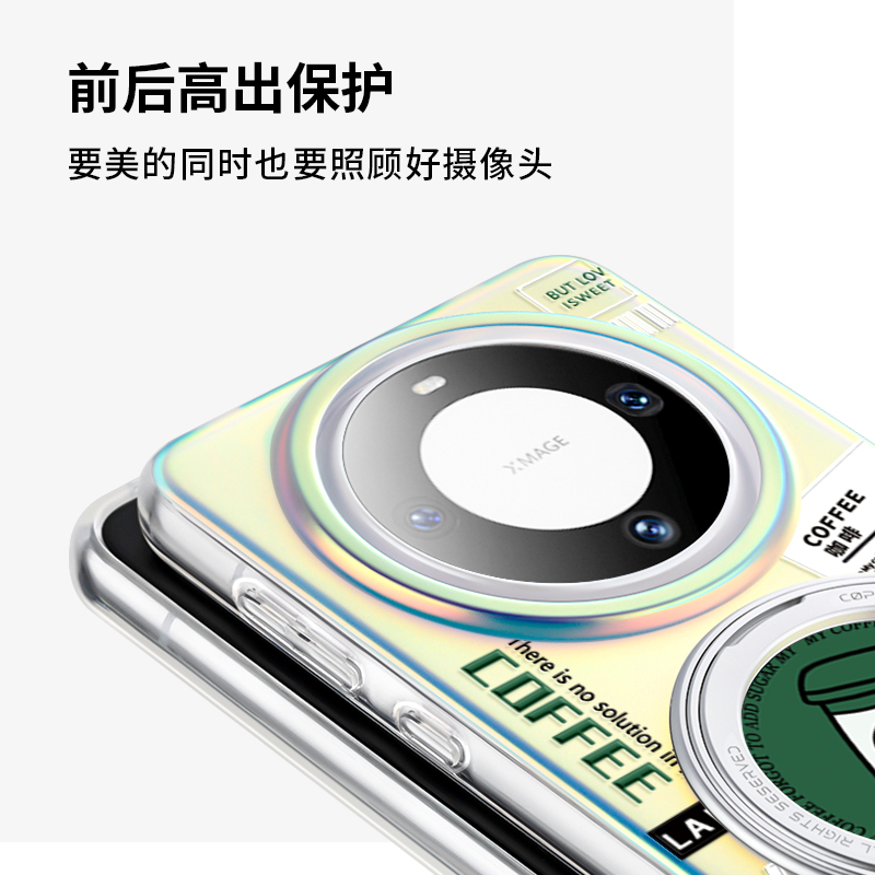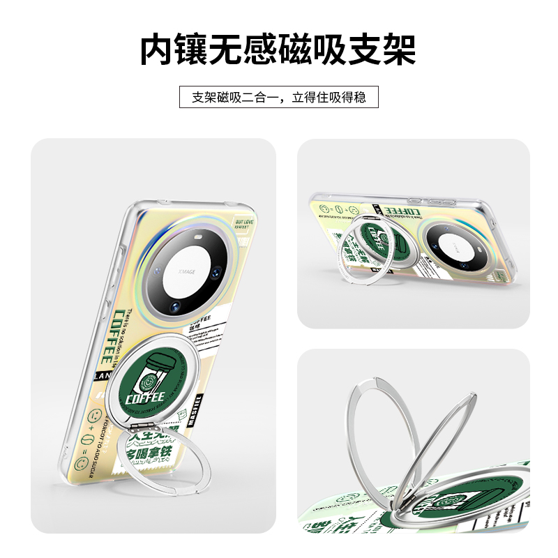 SHEHENG ×多喝拿铁适用于华为mate70pro手机壳mete60磁吸带360旋转支架支点壳新保护套防摔m高级Lo5