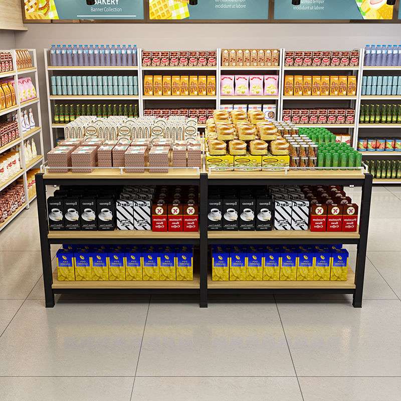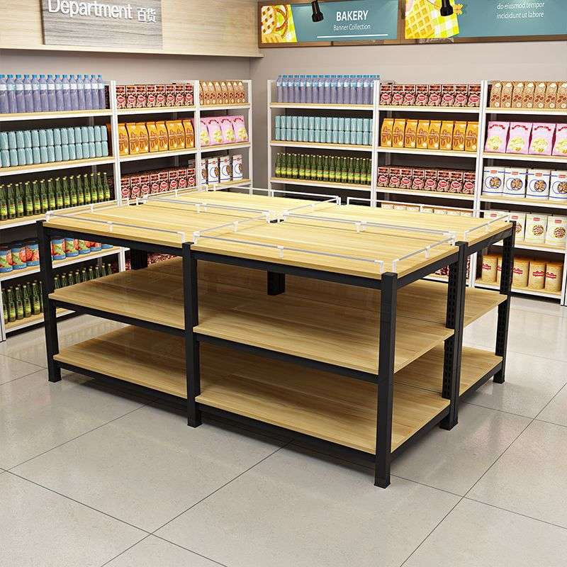 超市堆头货架展示架粮油米面饮料促销陈列架钢木厚超市两层可移动