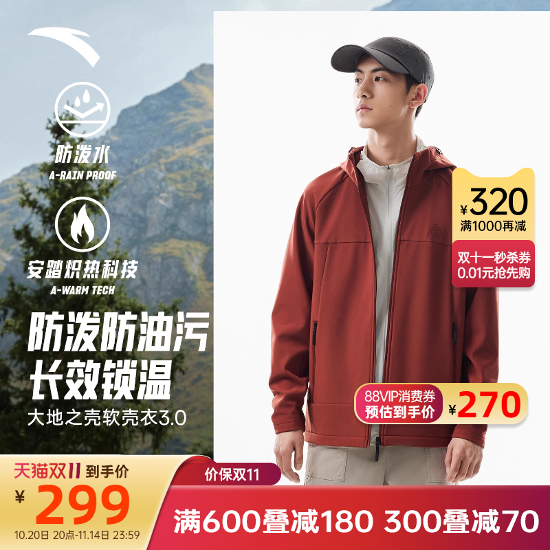 【林孝埈同款】安踏软壳衣丨大地之壳3.0三防加绒男户外运动外套