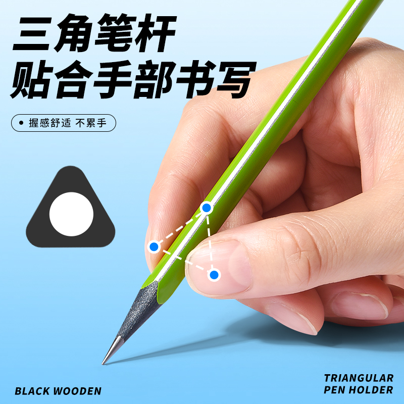 黑木铅笔三角正姿铅笔HB小学生专用一二年级学生铅笔2B幼儿园儿童初学练字学习文具无毒考试笔素描笔绘画笔