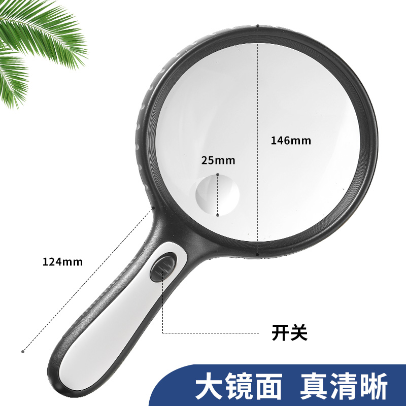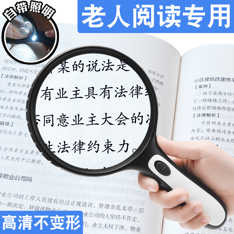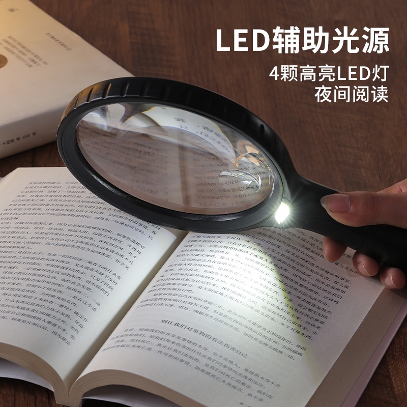 放大镜老人阅读高清高倍正品超大老年人专用扩大镜塑料柄大号老花眼鉴定专用带led灯便携式手持100儿童1000