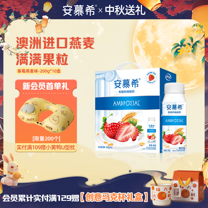 【中秋送礼】安慕希官方旗舰店希腊风味草莓燕麦酸奶整箱200g*10