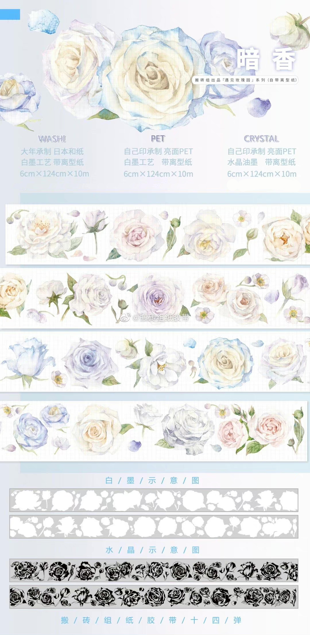 分装搬砖组情书墨晚焕蓝暗香落晖玫瑰花手帐和纸pet烫金水晶胶带