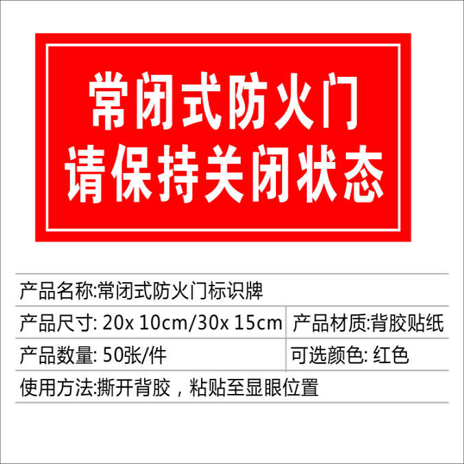 常闭式防火门贴纸标识牌消防标牌安全指示牌警示贴小贴纸定制