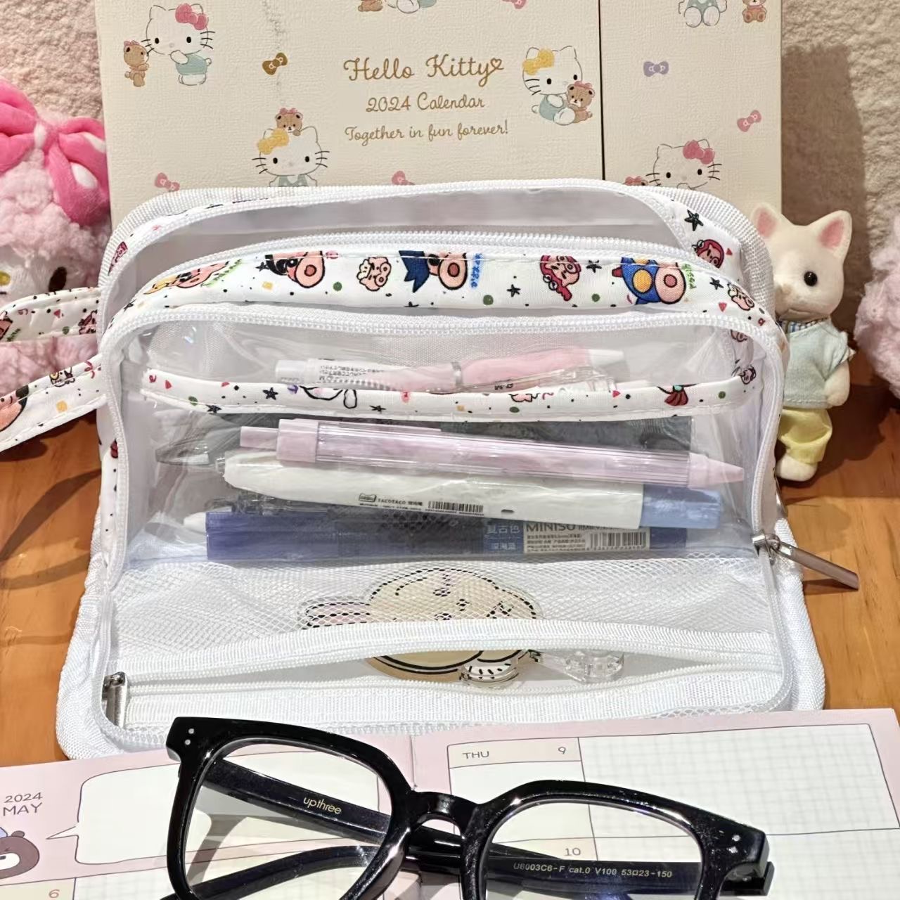 蜡笔小新卡通印花笔袋ins高颜值透明痛包多层大容量文具盒收纳袋