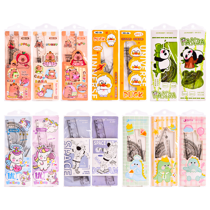 小学生专用尺子套装20cm套尺四件套直尺带波浪线三角尺量角器4件套学生奖品批发绘画测量多功能文具小礼品