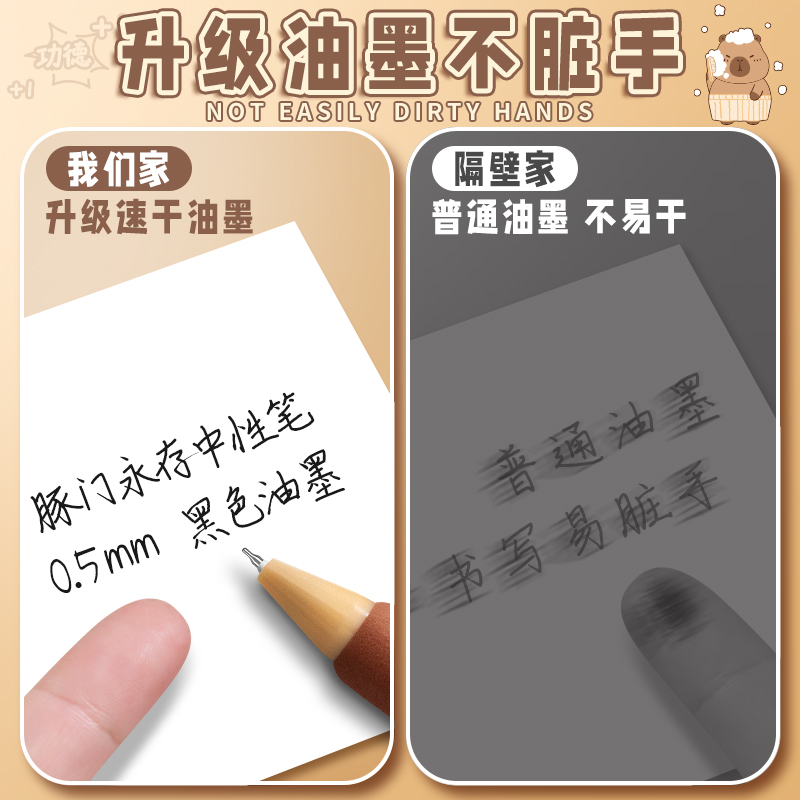 卡皮巴拉按动中性笔速干刷题笔欧包笔ST笔头高颜值初中生学生专用黑笔芯考试超软笔握水笔圆珠笔碳素签字笔