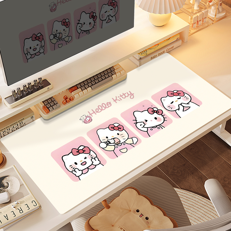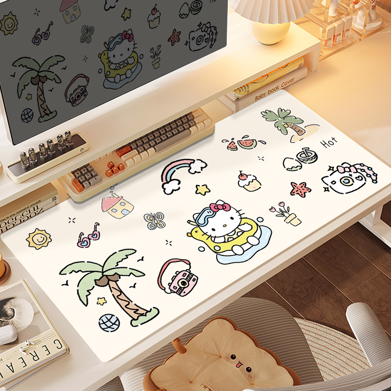 可爱凯蒂猫皮革鼠标垫超大防污书桌垫学生护眼写字垫耐脏定制尺寸