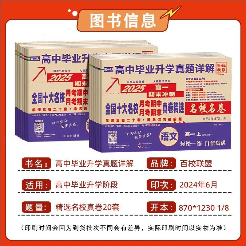 2025版百校联盟高中毕业升学真题详解高一高二上册下册数学物理化学英语必1必2全国十大名校期中期末名卷精选真卷联考试卷同步必修