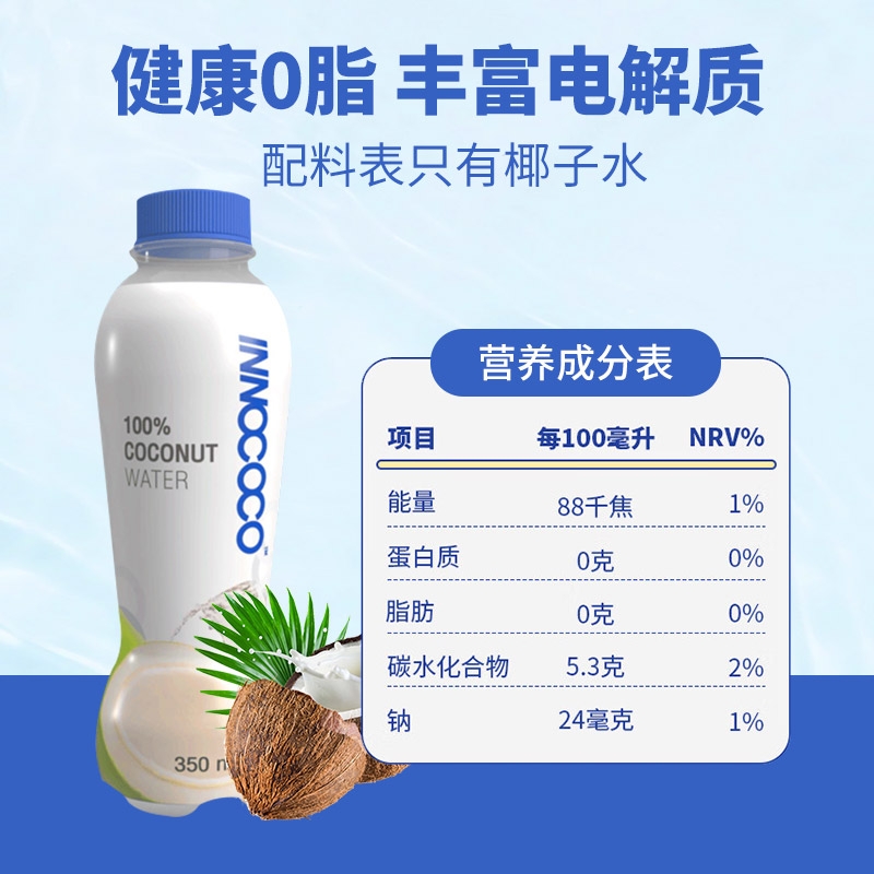 INNOCOCO椰子水泰国进口100%纯天然椰子水350ml*12瓶含电解质饮料