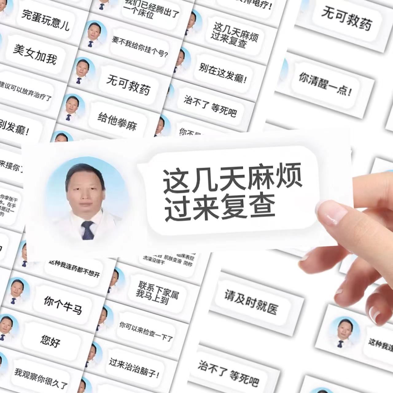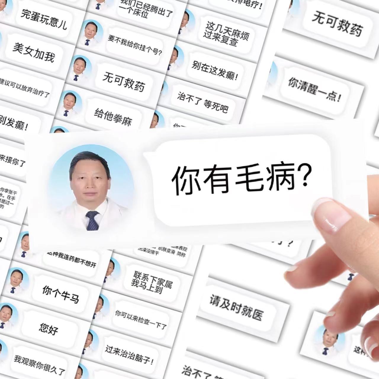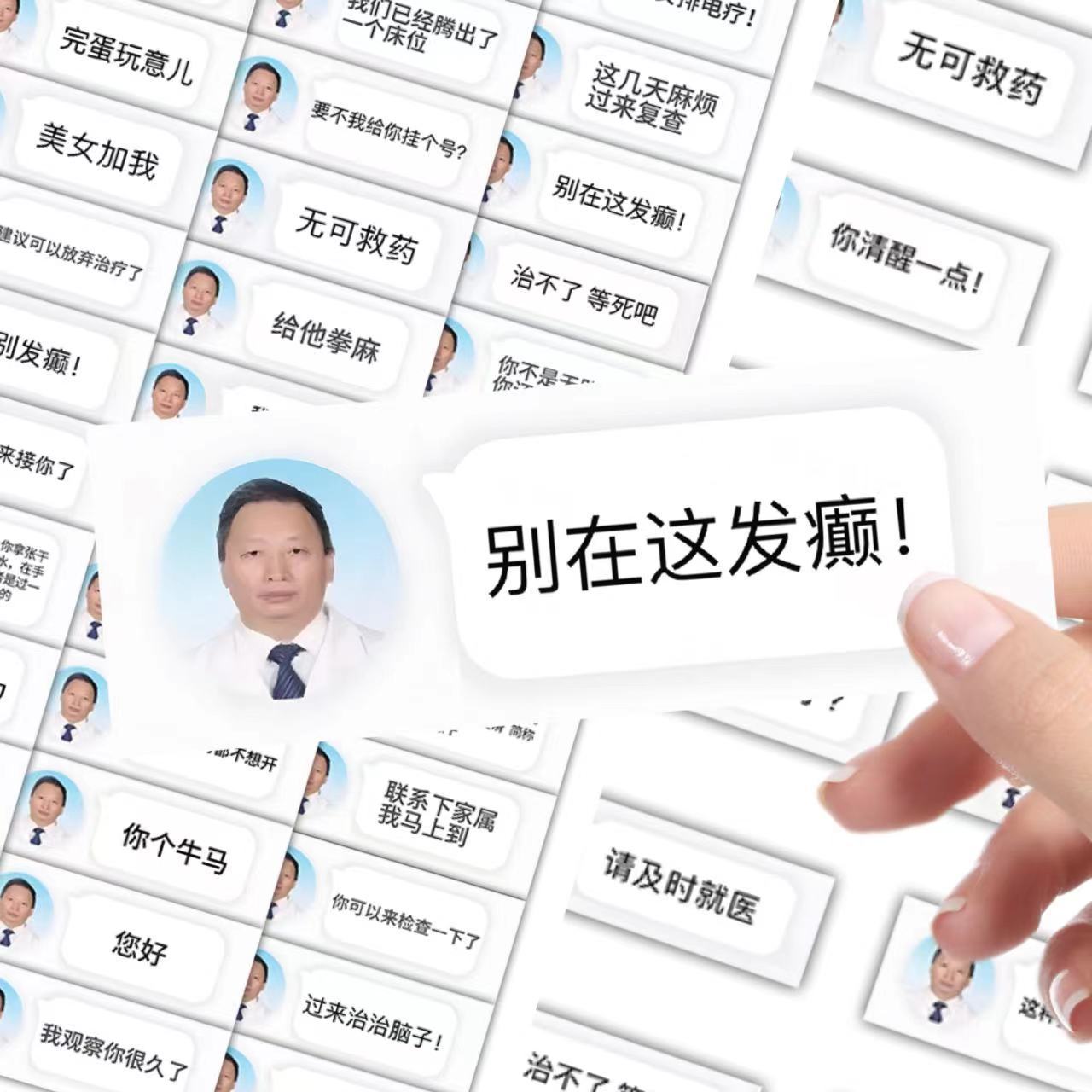 60张趣味病人抽象医生搞笑对话聊天记录贴纸创意手机行李装饰贴画