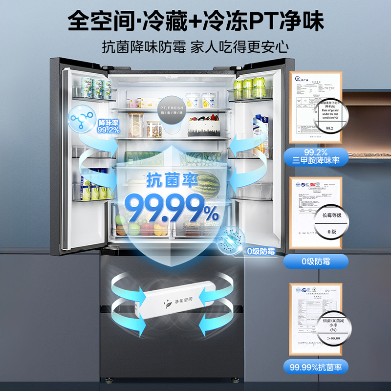 容声526L双净双系统法式多门一级能效变频家用冰箱以旧换新补贴
