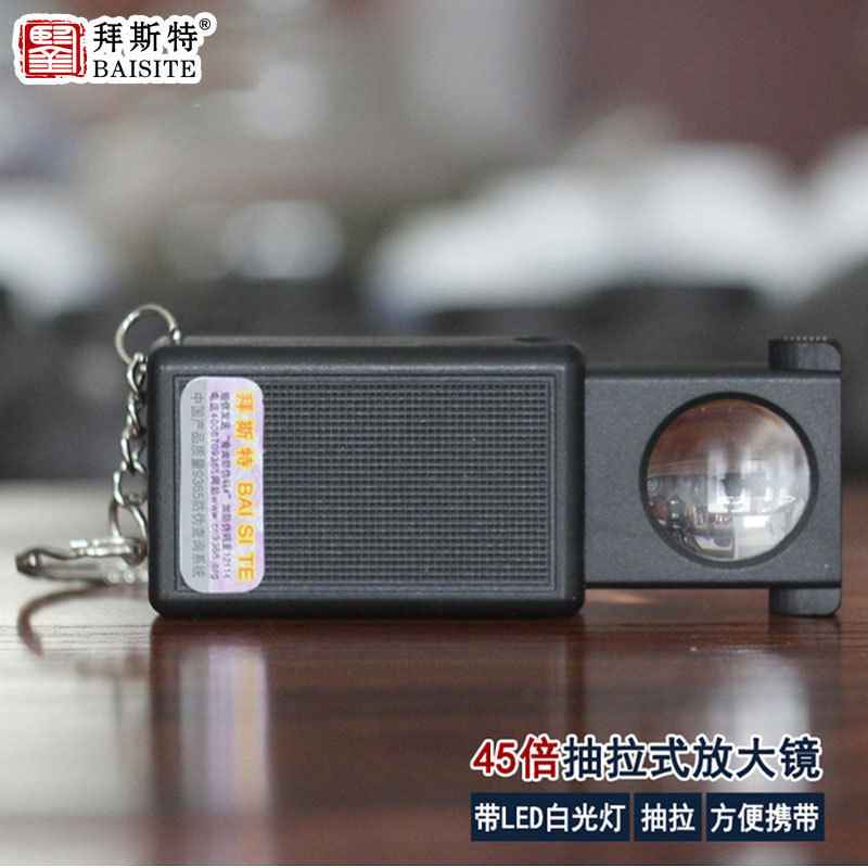 拜斯特放大镜鉴定专用银元钱币文玩钥匙扣45倍带灯抽拉式珠宝玉石