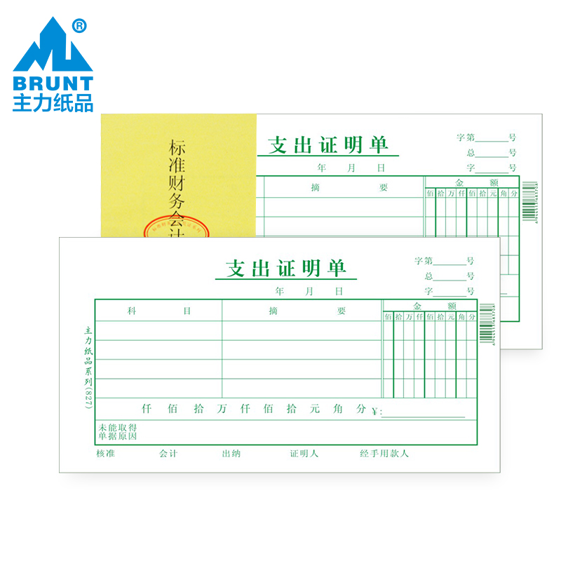 主力纸品支出证明单手写支付记账凭证48开70克双胶纸财务会计凭证纸财会用品通用票据定做定制 25页20本装827