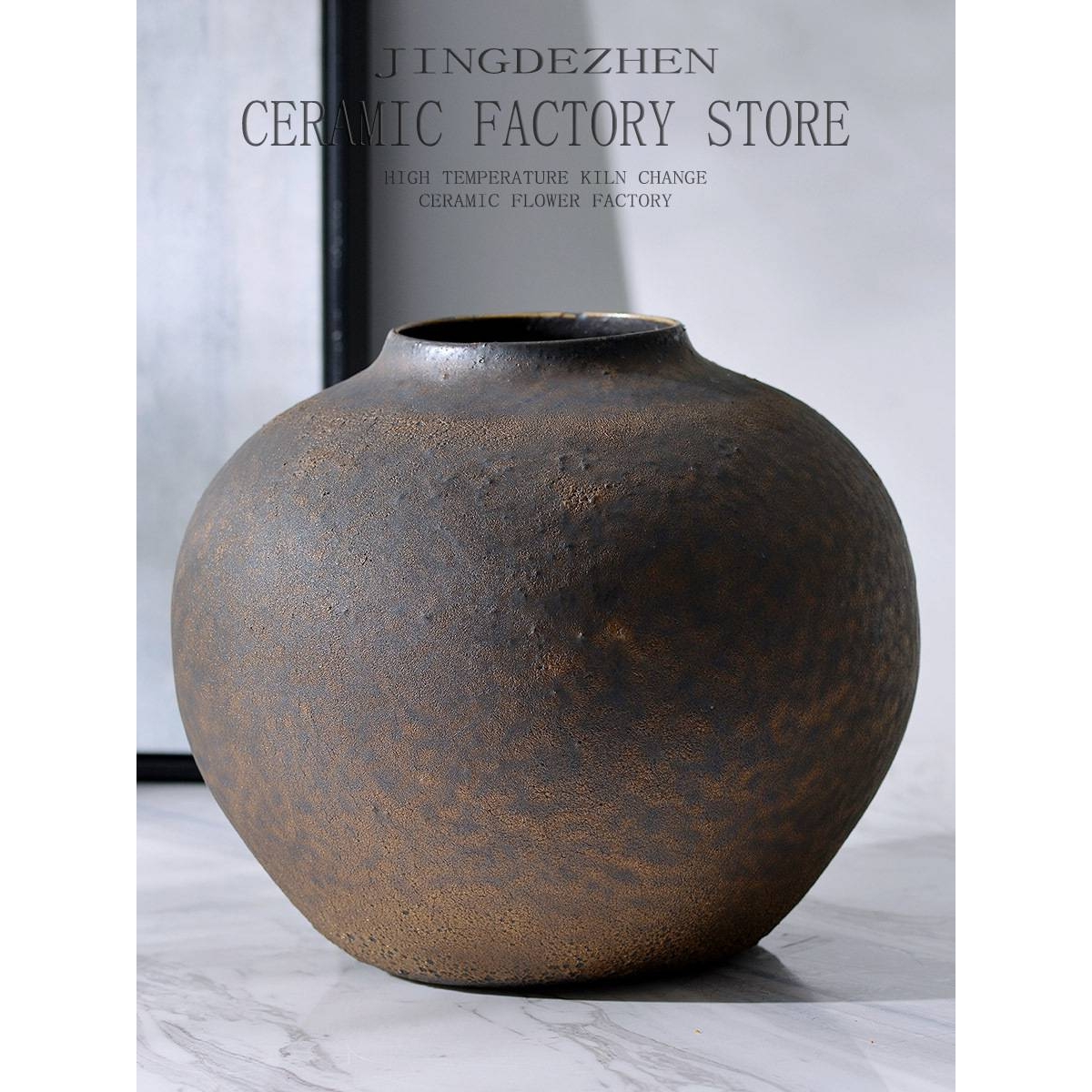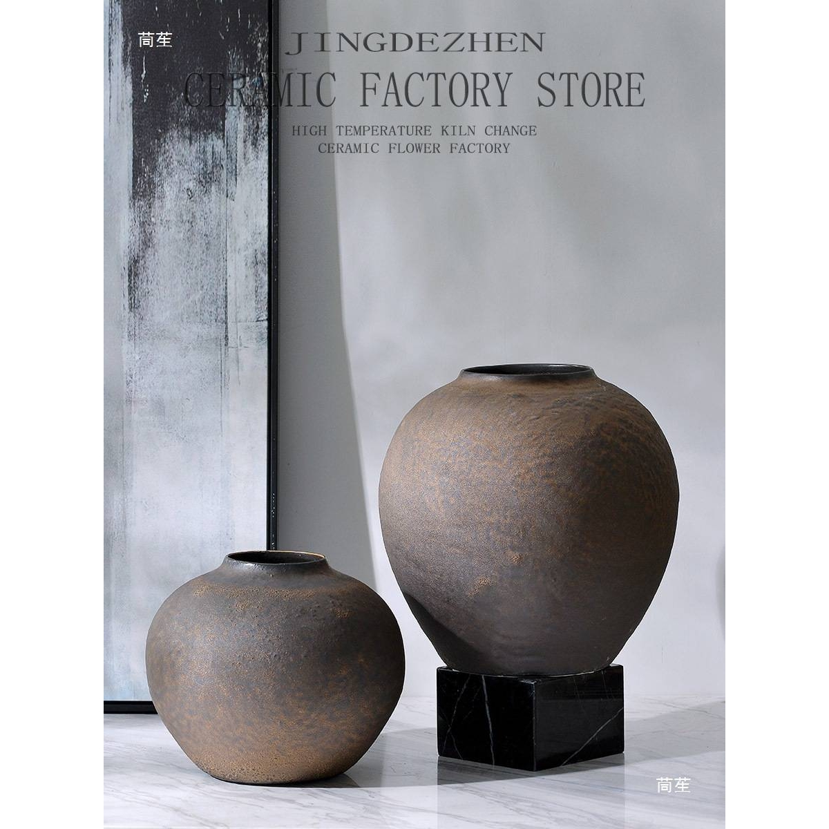 中式复古侘寂风古色陶罐花瓶客厅落地陶瓷摆件酒店样板间装饰品