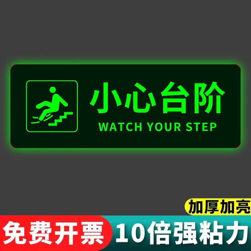 楼道楼梯通道疏散应急紧急逃生标小心地滑提示牌夜光免接电安全出口指示牌标识牌荧光贴纸墙贴地贴高级反光贴