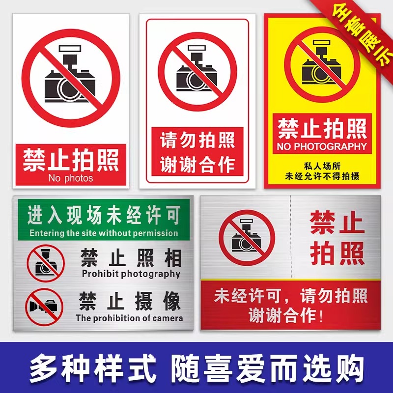 进入现场未经许可禁止拍照摄像拍摄录像手机摄影拍照片铝板亚克力警示牌提示牌标示牌定做温馨标识贴标志贴纸