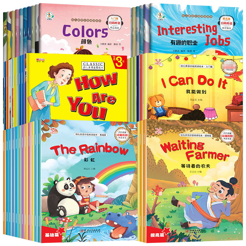 小学一二三四五六年级英语绘本分级阅读纯正发音入门篇+基础篇+提高篇 小学生英文课外阅读书幼儿启蒙有声绘本正版