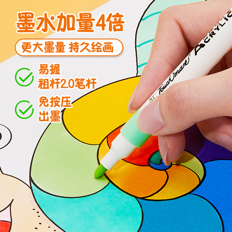 touchmark红色丙烯马克笔单支小学生彩笔美术专用大红正红记号笔国庆中秋儿童手抄报画笔幼儿园涂鸦水彩笔