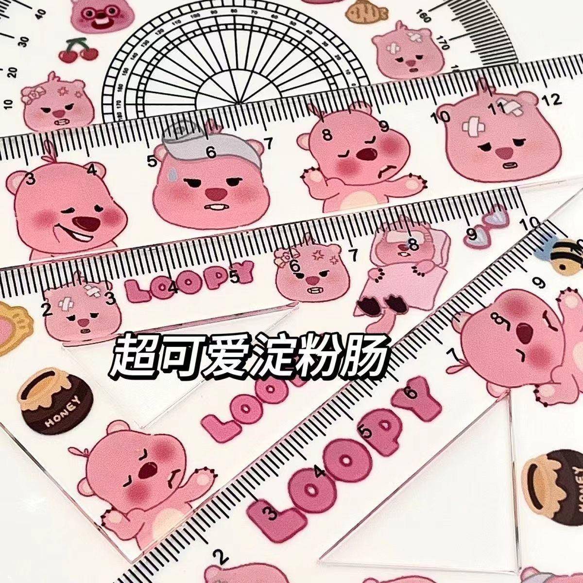 某红书同款粉色海狸可爱透明学习套尺卡通学生量角文具三角尺全套