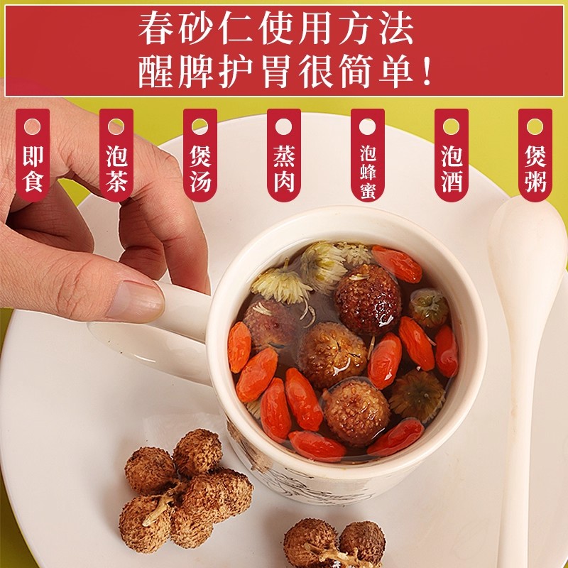 野生阳春砂仁中药材干货滋补泡水泡茶搭配红枸杞煲汤料太子参泡酒