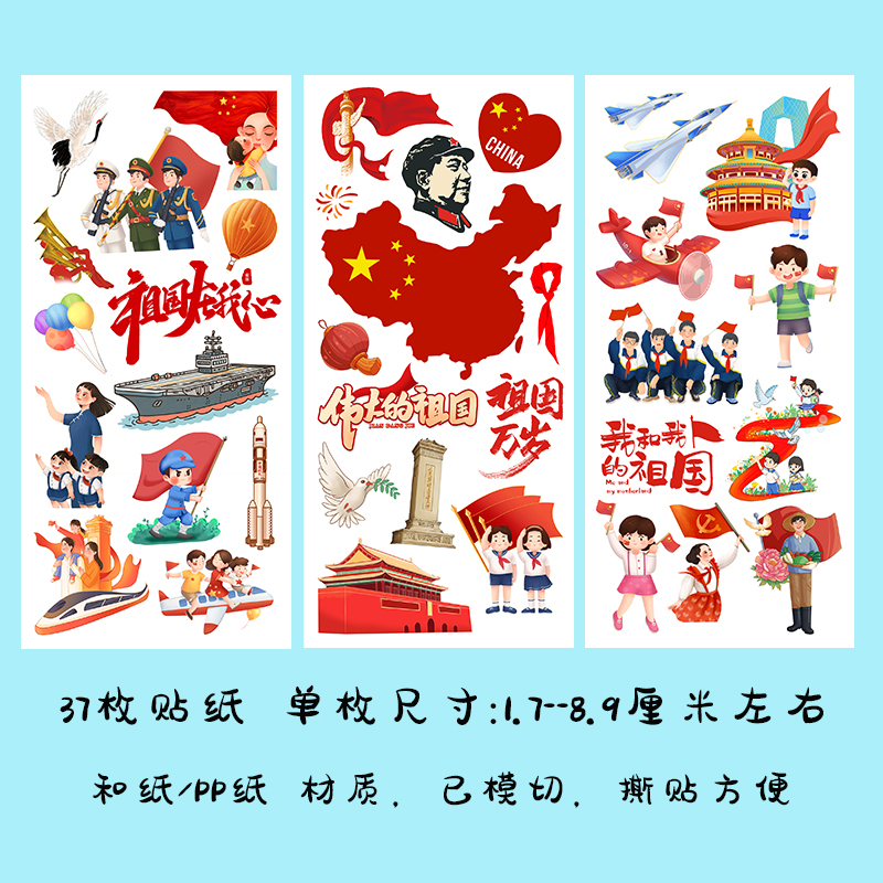 我和我的祖国手帐贴纸国庆节我爱中国红色文化爱国主义主题贴画