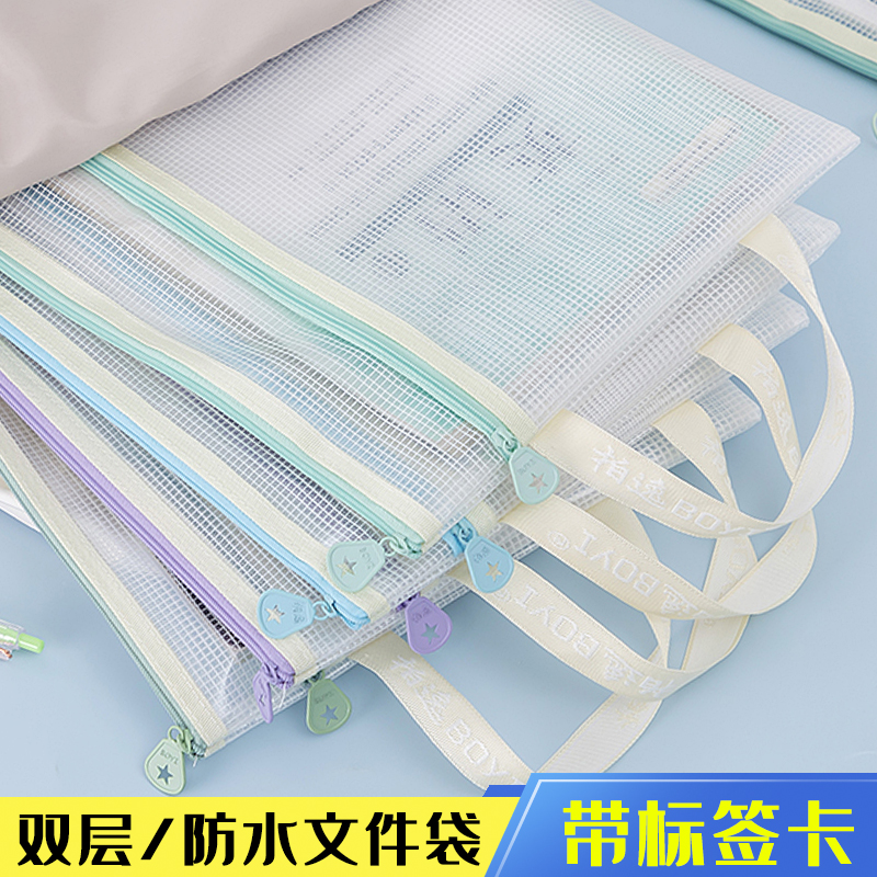 学科科目分类文件袋拉链式双层大容量小学生用资料书本课本分科书袋试卷收纳袋学生装卷子作业袋子A4透明网纱