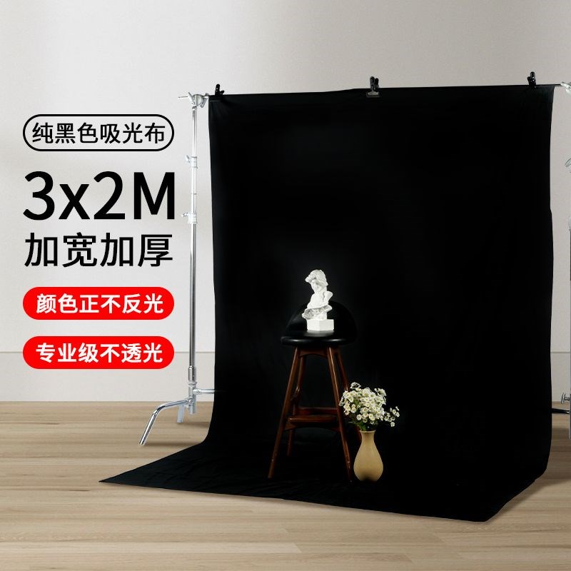 纯黑色吸光布摄影背景布拍摄道z具拍照不反光加厚纯黑纯色背景墙