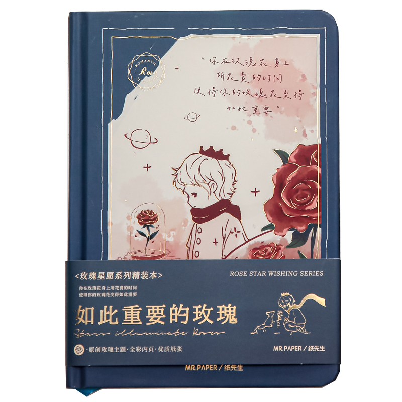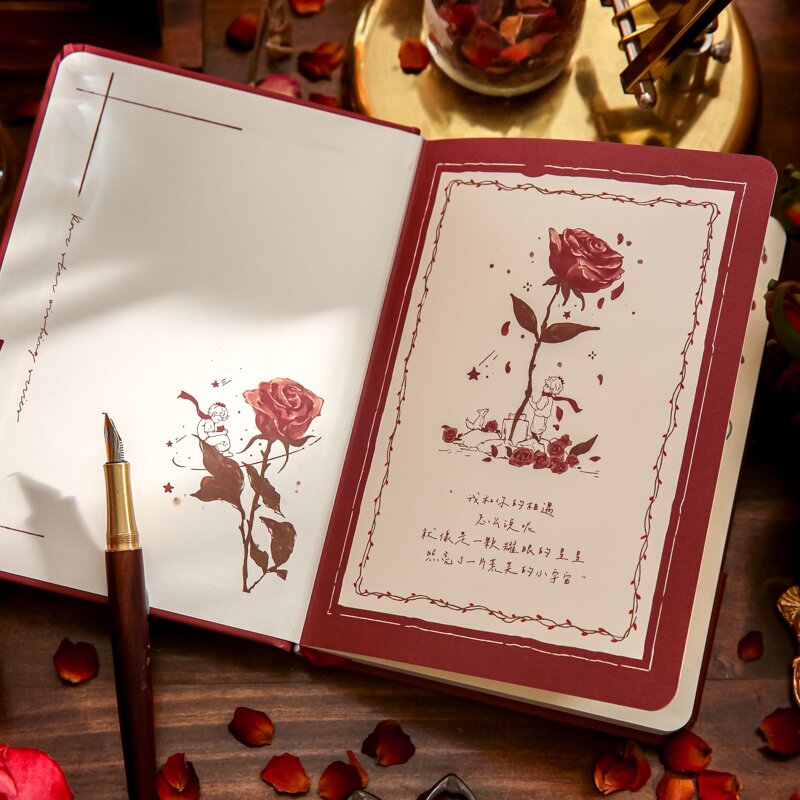 现货速发小王子玫瑰花硬面精装本子全彩页可爱手帐日记事本手账文
