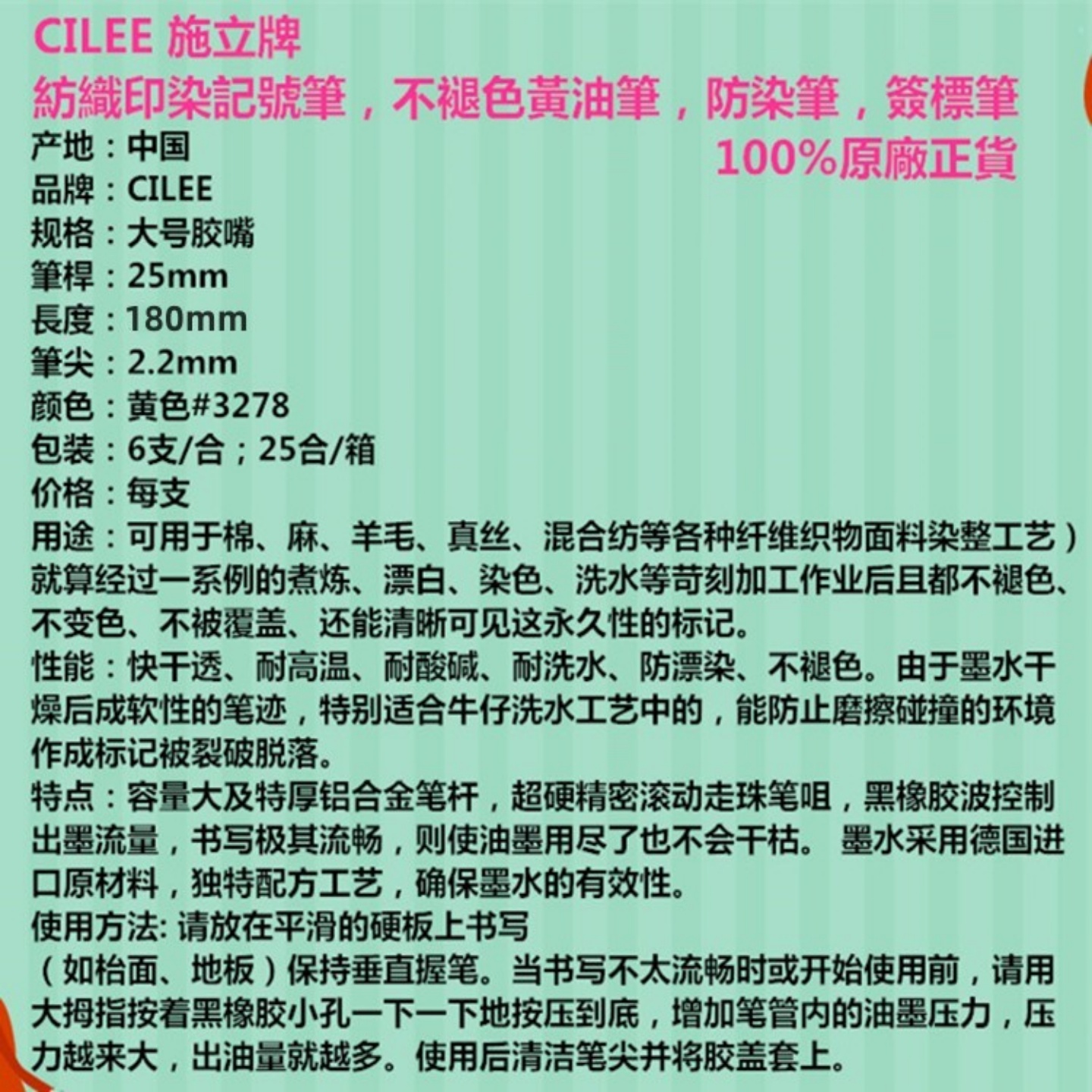 总代理cilee施立记号笔气压式硬铝管防漂染黄油笔耐洗水不掉