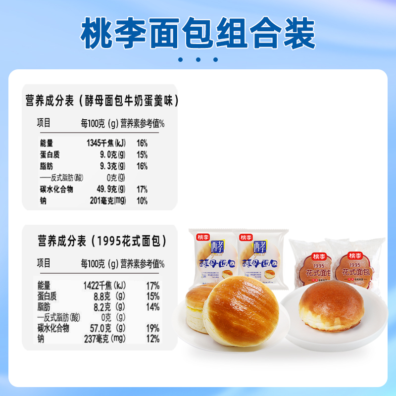 桃李【酵母面包+花式面包】组合装共4袋早餐零食品糕点小面包