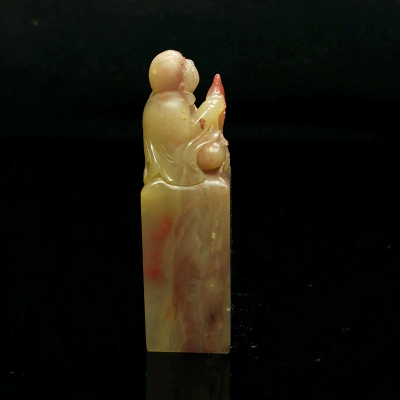 昌化石鸡血石朱砂红童子戏鱼如鱼得水寓意美好人物雕生日礼物寿辰
