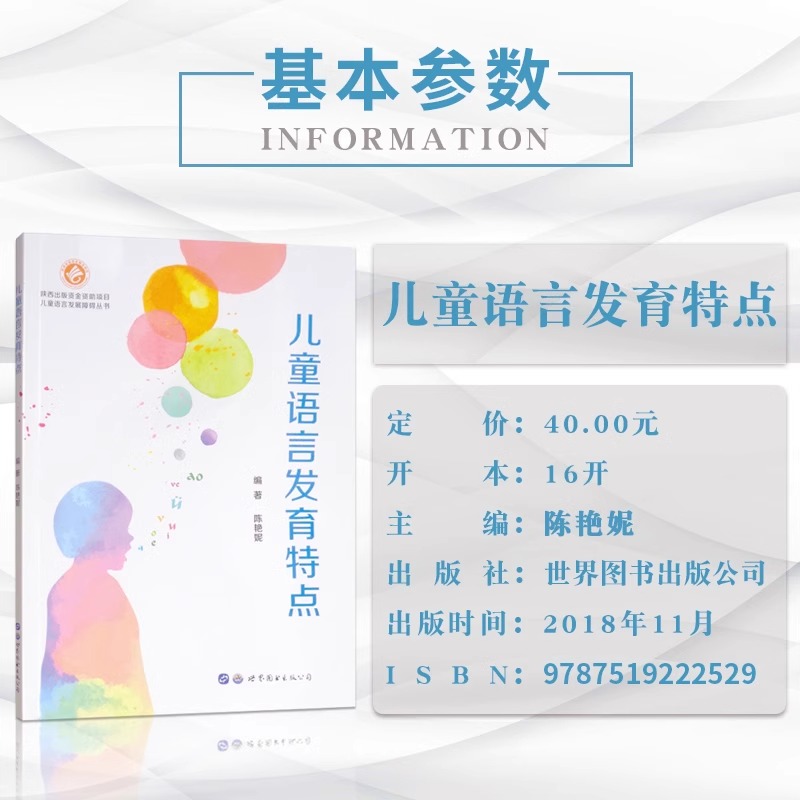 儿童语言发育特点 陈艳妮著 学龄前及学龄期正常儿童语言发育障碍语言测试方法心理学心理健康儿科医学书籍 世界图书出版公司