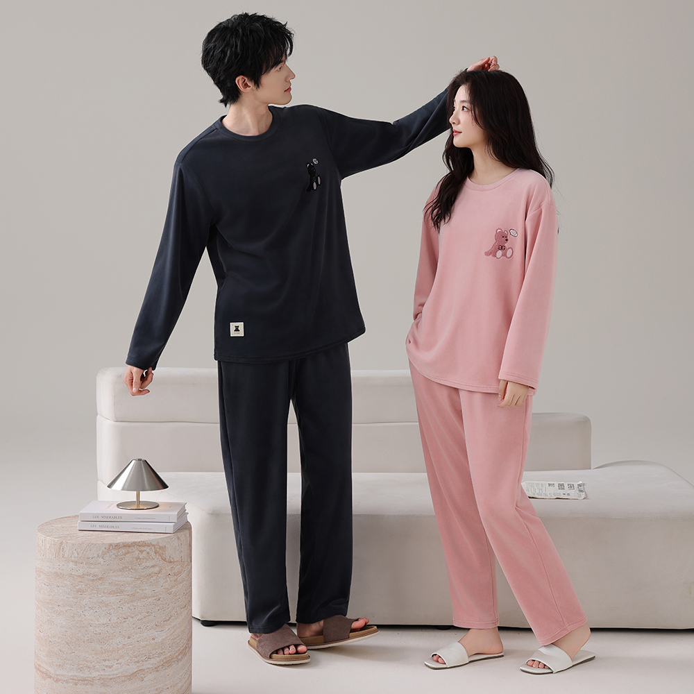 乐姿梦小熊睡衣情侣装男女冬季海岛绒加厚惬意家居服秋冬天可外穿