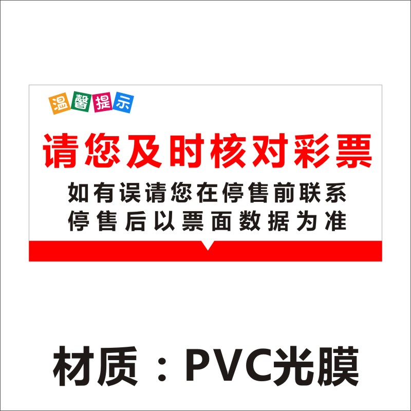 请及时核对彩票温馨提示牌核对彩票广告PVC不干胶标签贴纸B