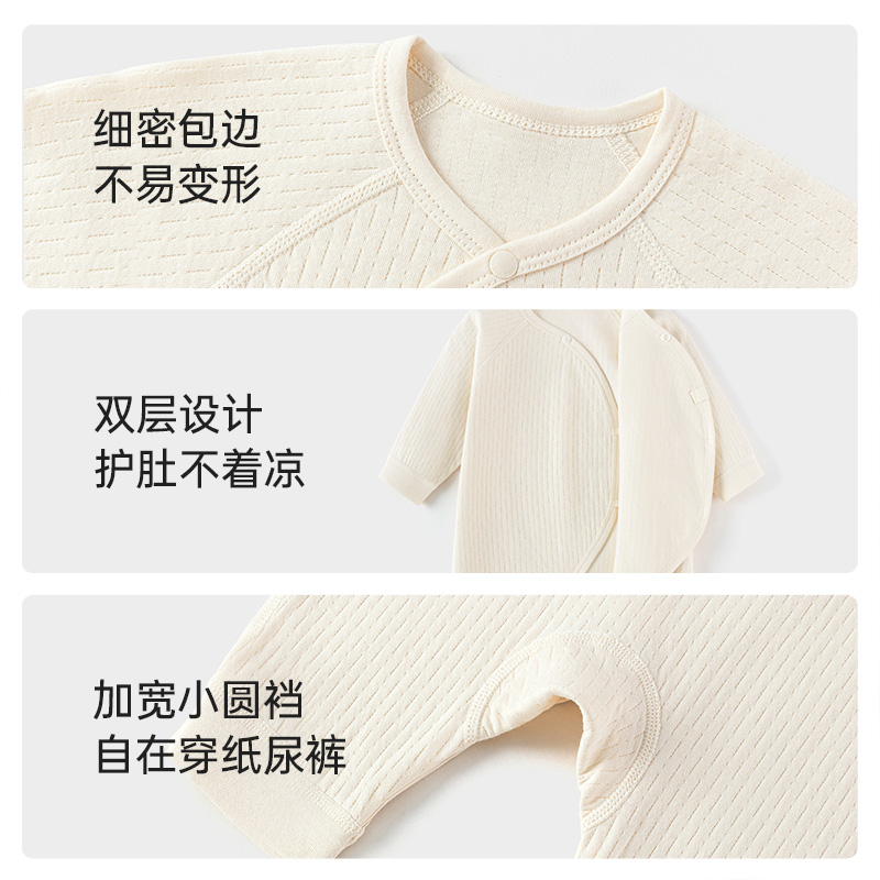 婧麒新生儿婴儿衣服秋冬夹棉满月纯棉初生宝宝秋装连体衣a类爬服