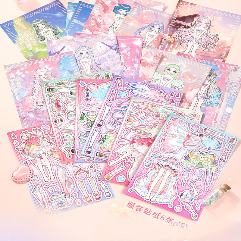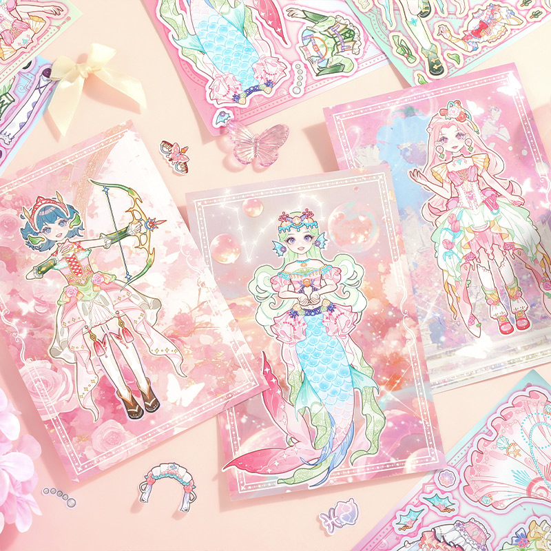 (免剪裁直接玩)星座主题不重复可爱人物换装游戏贴纸手帐DIY56789岁女孩生日礼物少女心手账咕卡手机壳装饰