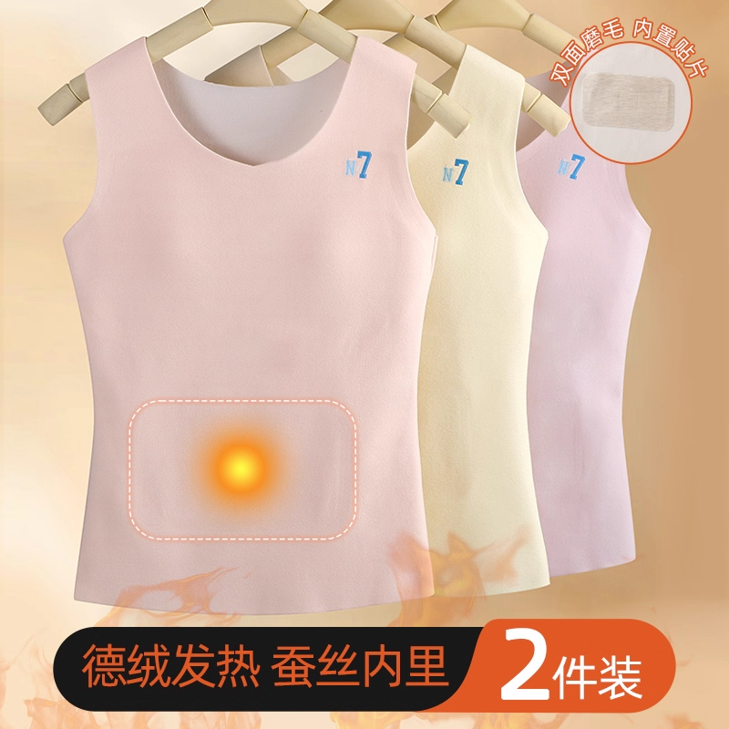 女童发育期内衣2025初中学生冬季内穿小学生保暖德绒蚕丝少女背心