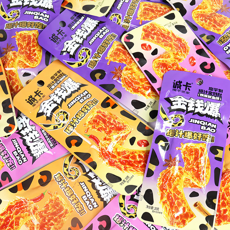 诚卡金钱爆魔芋爆汁金钱肚香辣小龙虾火锅味盒装网红宿舍追剧零食
