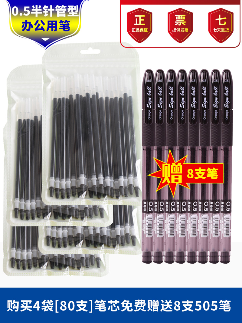 橘林505黑珍珠0.5半针管葫芦头书写顺畅稳定可靠安全办公用中性笔