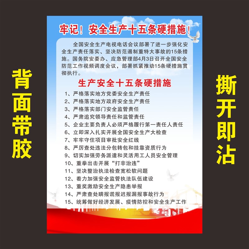 2022年安全生产十n五条硬措施宣传栏严格落实安全生产责任海报标