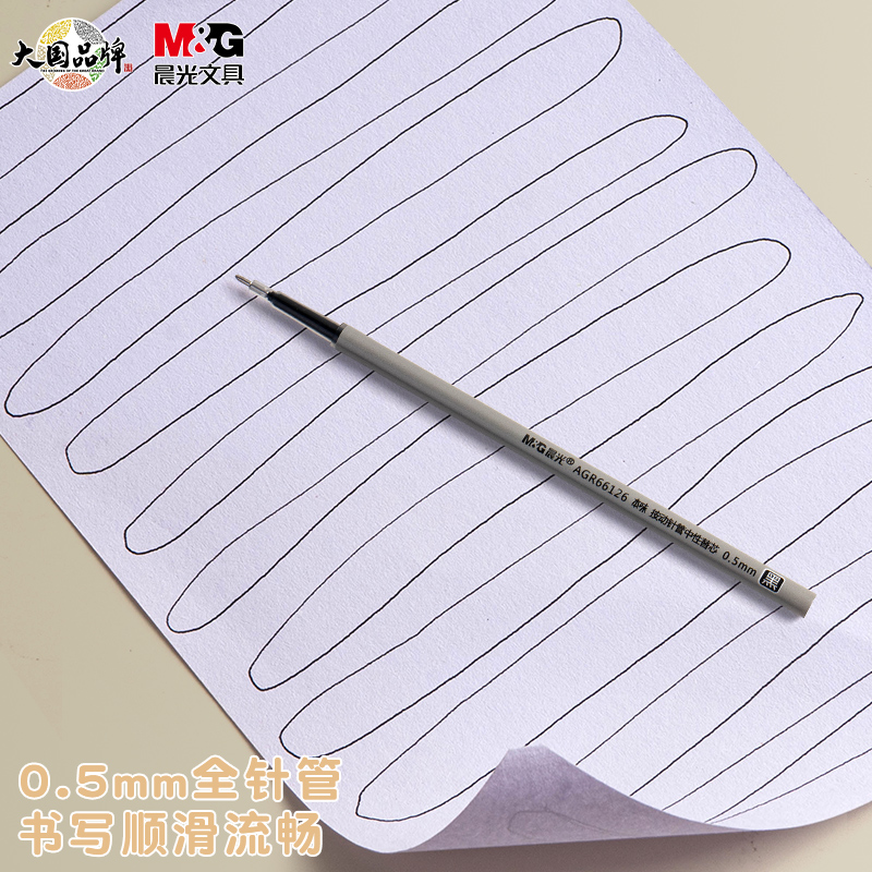 晨光本味系列按动笔芯9008学生用0.5全针管黑色中性笔芯按动笔中性笔笔芯按动式9006可替换针管型弹簧替芯黑