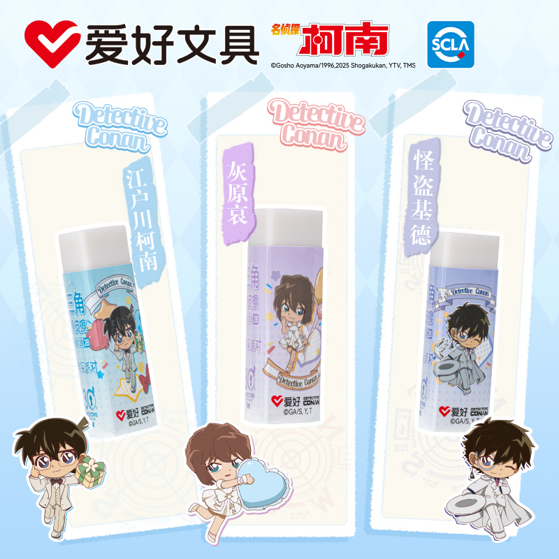爱好名侦探柯南联名三角橡皮橡皮擦少屑超干净小学生专用高颜值集屑成条幼儿园儿童不留痕擦字成条铅笔檫